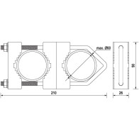 Nosilec BLH-200 je narejen za horizontalno pritrditev na cev npr. balkonsko ograjo do debeline 70mm