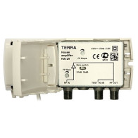 Večpasovni ojačevalnik TERRA MX-062 je namenjen ojačitvi TV signalov v VHF in UHF frekvenčnem pasu ter radijskih FM frekvenc. Ojačevalnik napajamo z 12V napajalnikom preko izhodnega F priklopa po koaksialnem kablu.